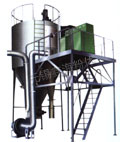 概述: 噴霧干燥是液體工藝成形和干燥工業(yè)中廣泛應用的工藝。適用于從溶液、乳液、懸浮液和可塑性糊狀液體原料中生成粉狀、顆粒狀或塊狀固體產(chǎn)品。因此,當成品的顆粒大小分布、殘留水份含量、堆積密度和顆粒形狀必須符合精確的標準時。噴霧干燥是一道合適的工藝。 工作原理: 空氣經(jīng)過濾和加熱,進入干燥器頂部空氣分配器,熱空氣呈螺旋狀均勻地進入干燥室。料液經(jīng)塔體頂部的高速離心霧化器,(旋轉)噴霧成細微的霧狀液珠,與熱空氣并流接觸在短的時間內(nèi)可干燥為成品。成品連續(xù)地由干燥塔底部和旋風分離器中輸出,廢氣由風機排空。 特點: ★ 干燥速度快,料液經(jīng)霧化后表面積大大增加,在熱風氣流中,瞬間就可蒸發(fā)95%-98%的水份,完成干燥時間僅需數(shù)秒,特別適用于熱敏性物料的干燥?! ?br /> ★ 產(chǎn)品具有良好的均勻度、流動性和溶解性,產(chǎn)品純度高,質(zhì)量好。 ★ 生產(chǎn)過程簡化,操作控制方便。對于含濕量40—60%(特殊物料可達90%)的液體能一次干燥成粉粒產(chǎn)品,干燥后不需粉碎和篩選,減少生產(chǎn)工序,提高產(chǎn)品純度。對產(chǎn)品粒徑,松密度,水份,在一定范圍內(nèi)可通過改變操作條件進行調(diào)整,控制和管理都方便。