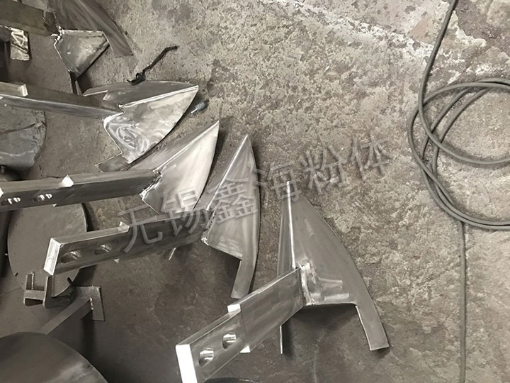 混合機噴液裝置固定在筒體上方,噴嘴采用農用噴頭,噴散效果好。